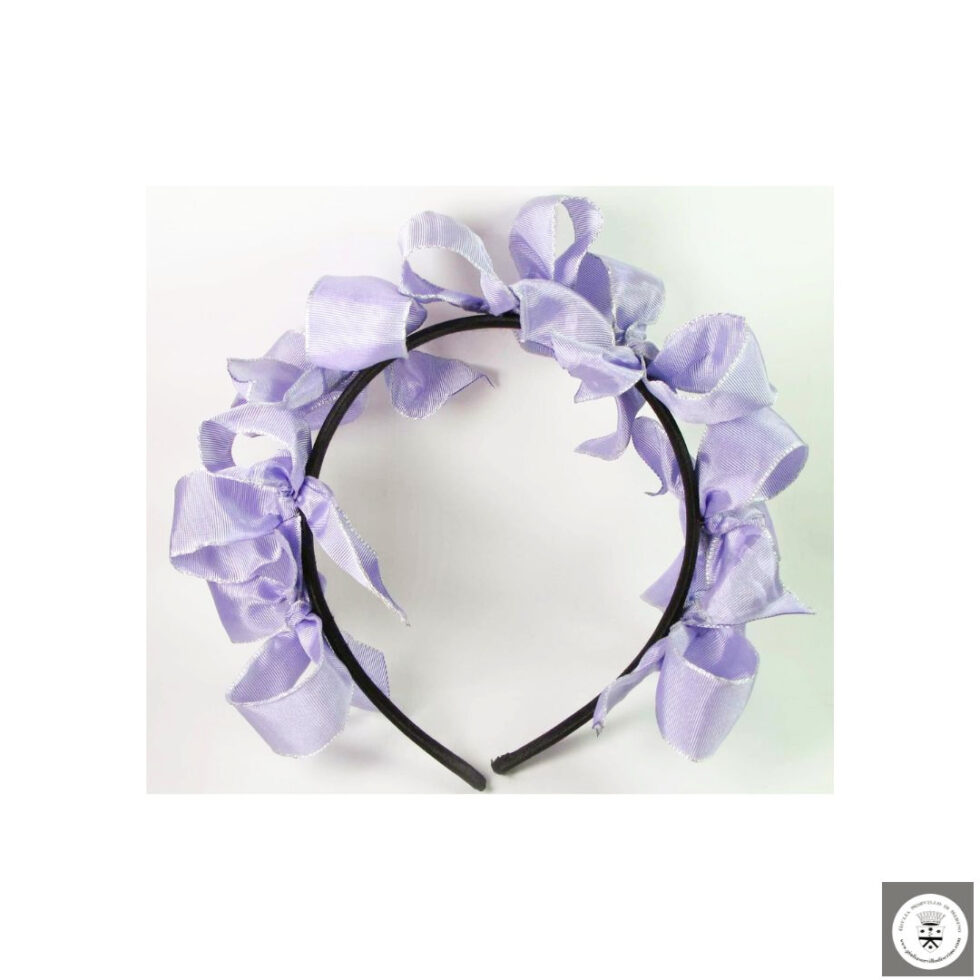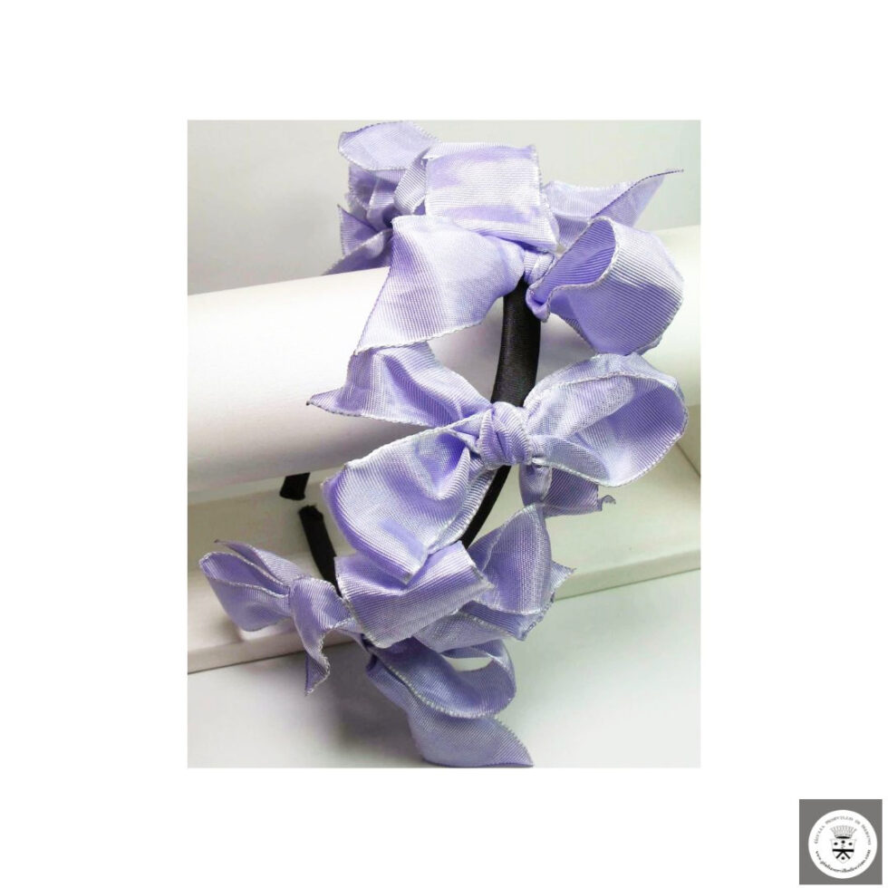 Cerchietto per capelli in satin nero con fiocchi in taffeta lilla