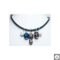 Collana in pelle blu con murrine, perle barocche bianca e peacock