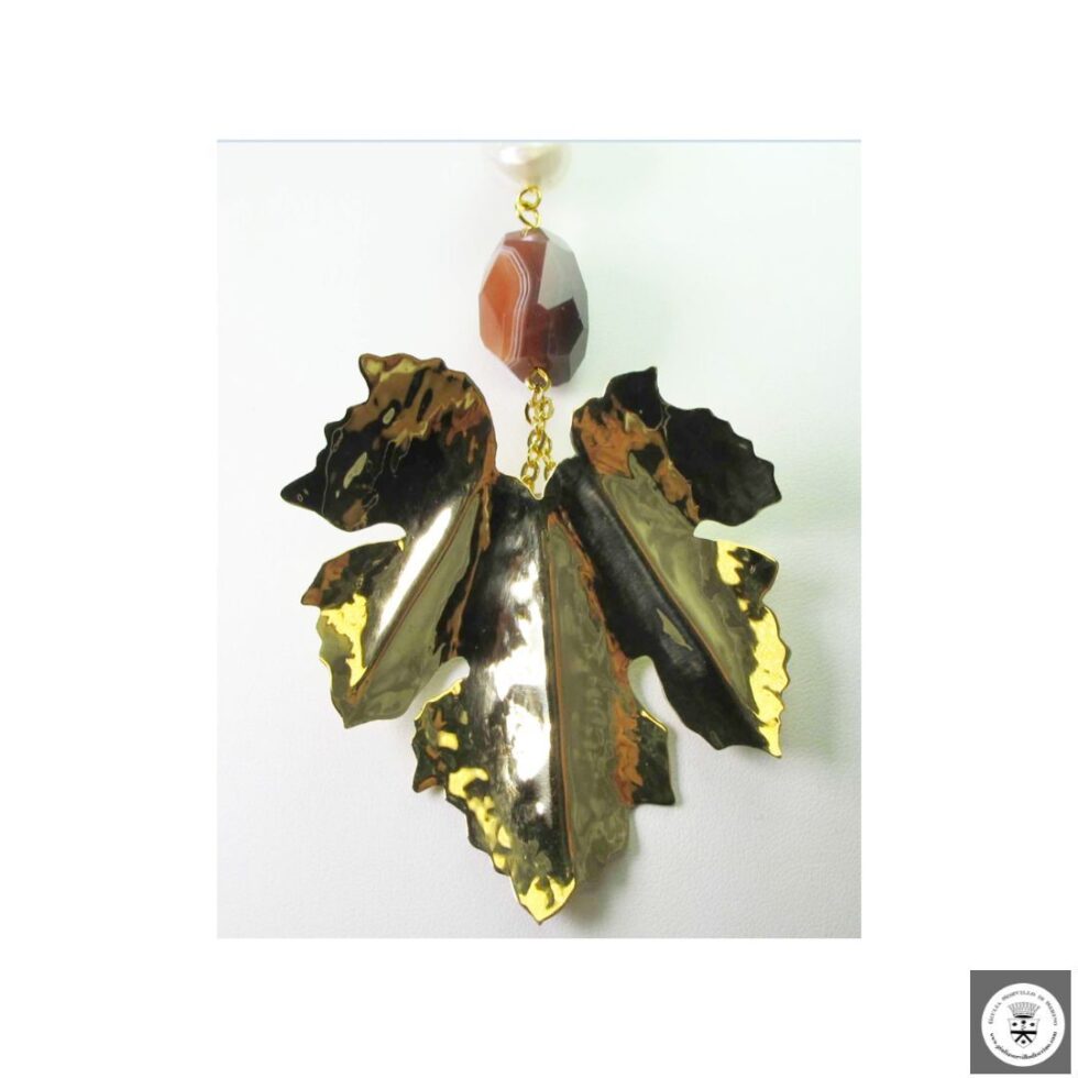Collana in seta pura di Jaipur con perla di fiume, agata del Botswana e foglia in ottone di Avventura di Latta