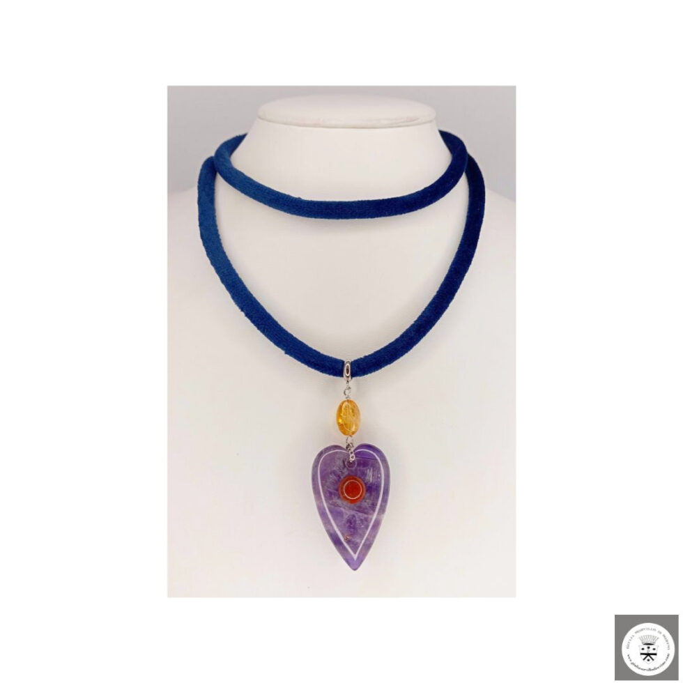 Collana in velluto con cuori in pietra dura semipreziose e pietre cabochon. Chiusura in acciaio nickel free.