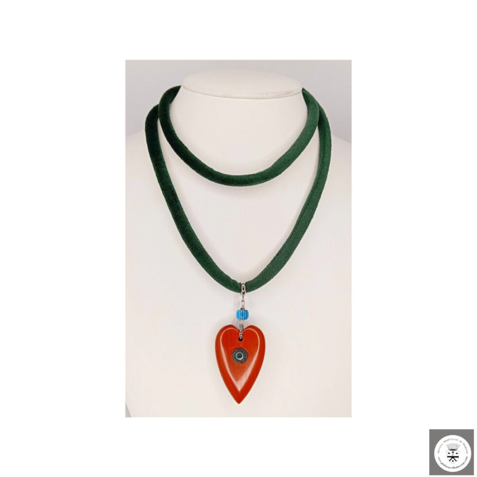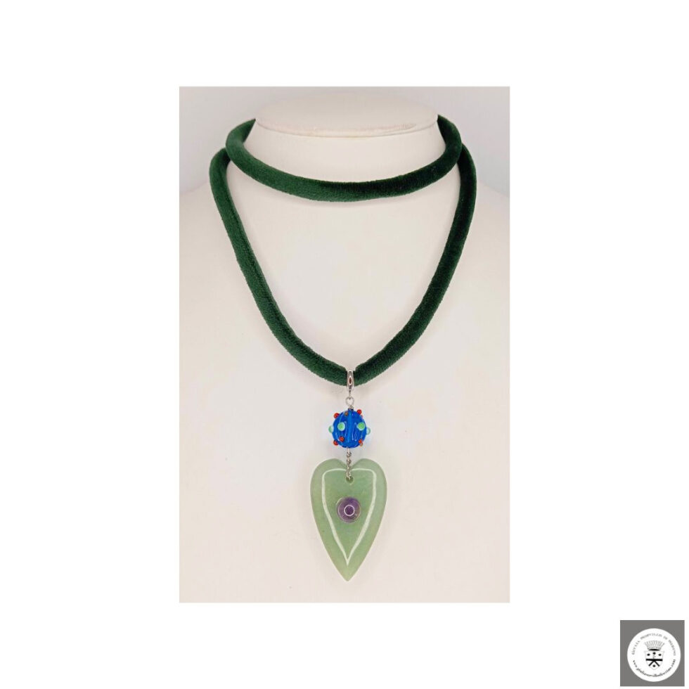 Collana in velluto con cuori in pietra dura semipreziose e pietre cabochon