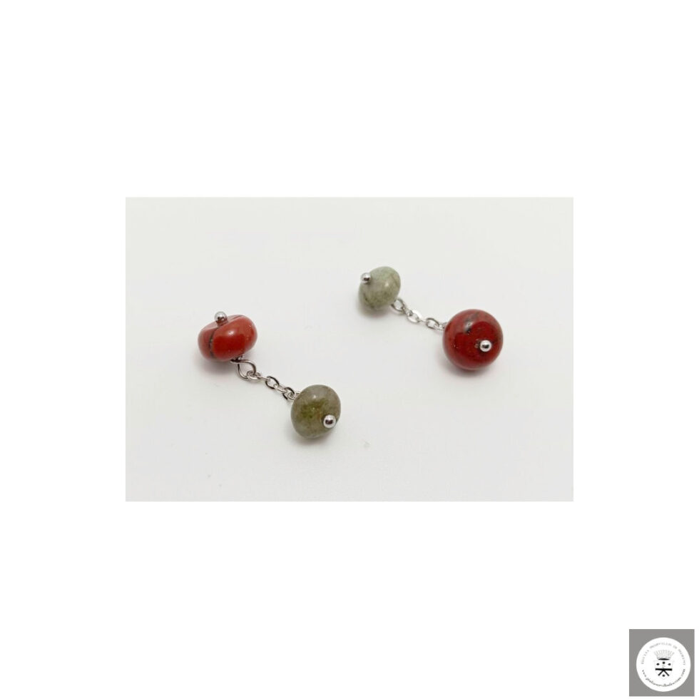 Gemelli con diaspro rosso e labradorite. Catena in acciaio nickel free