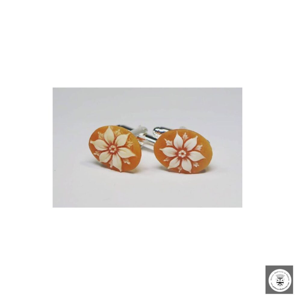 Gemelli in acciaio a scatto con camei con margherite