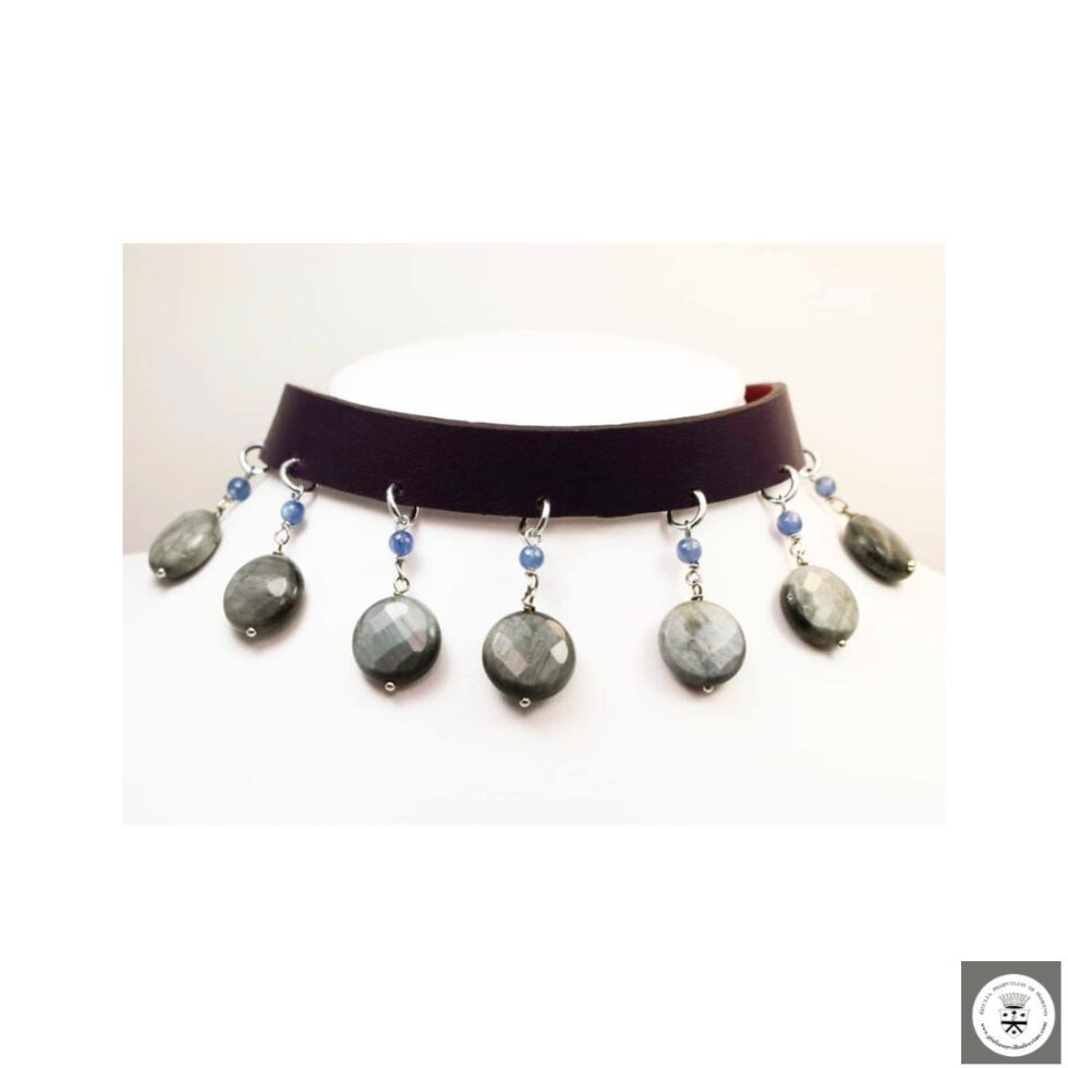 Girocollo e bracciale in pelle con occhio di falco e kyanite