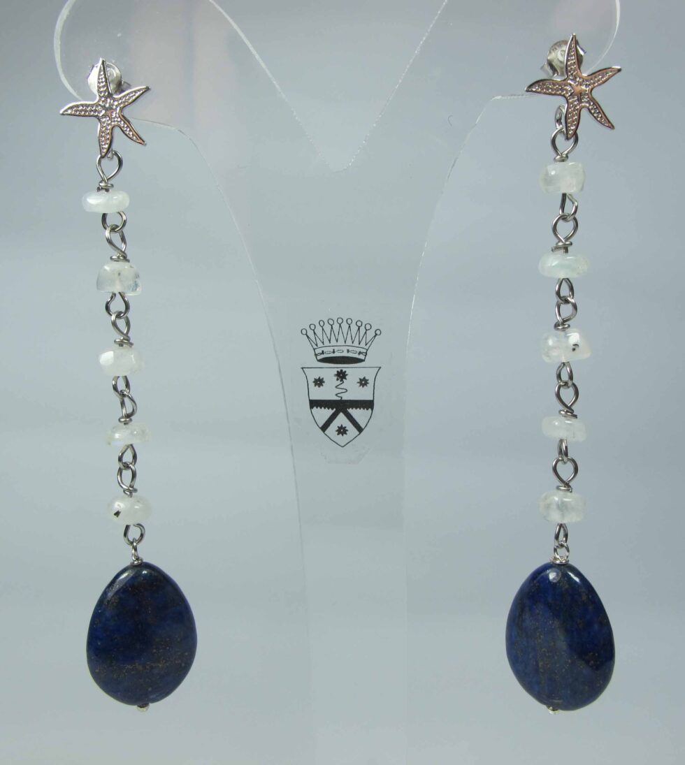 Orecchini in argento a stella con lapislazzuli e pietra di luna. Nickel free.