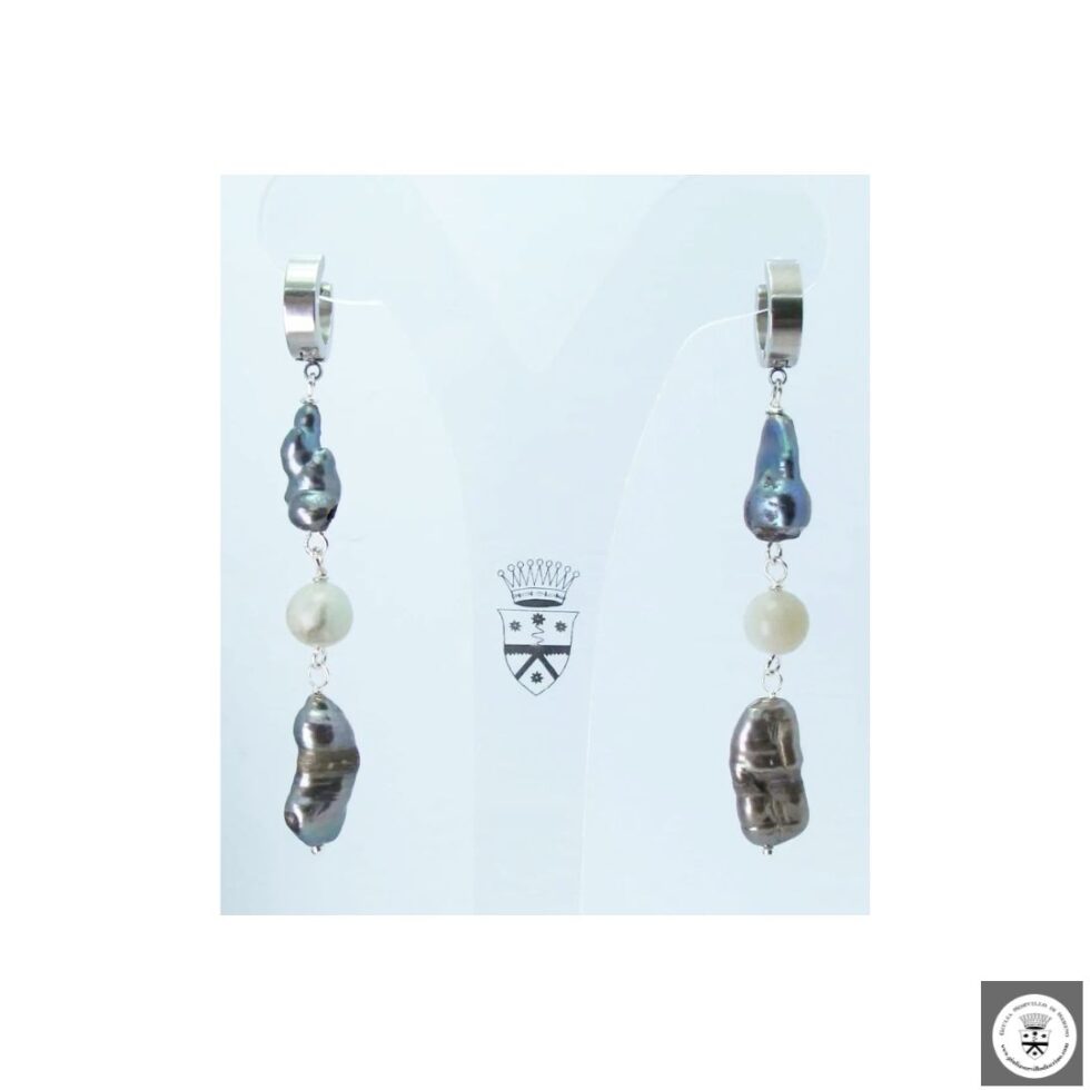 Orecchini lunghi con perle keshi grigie 1st quality e amazzonite. Nickel free.