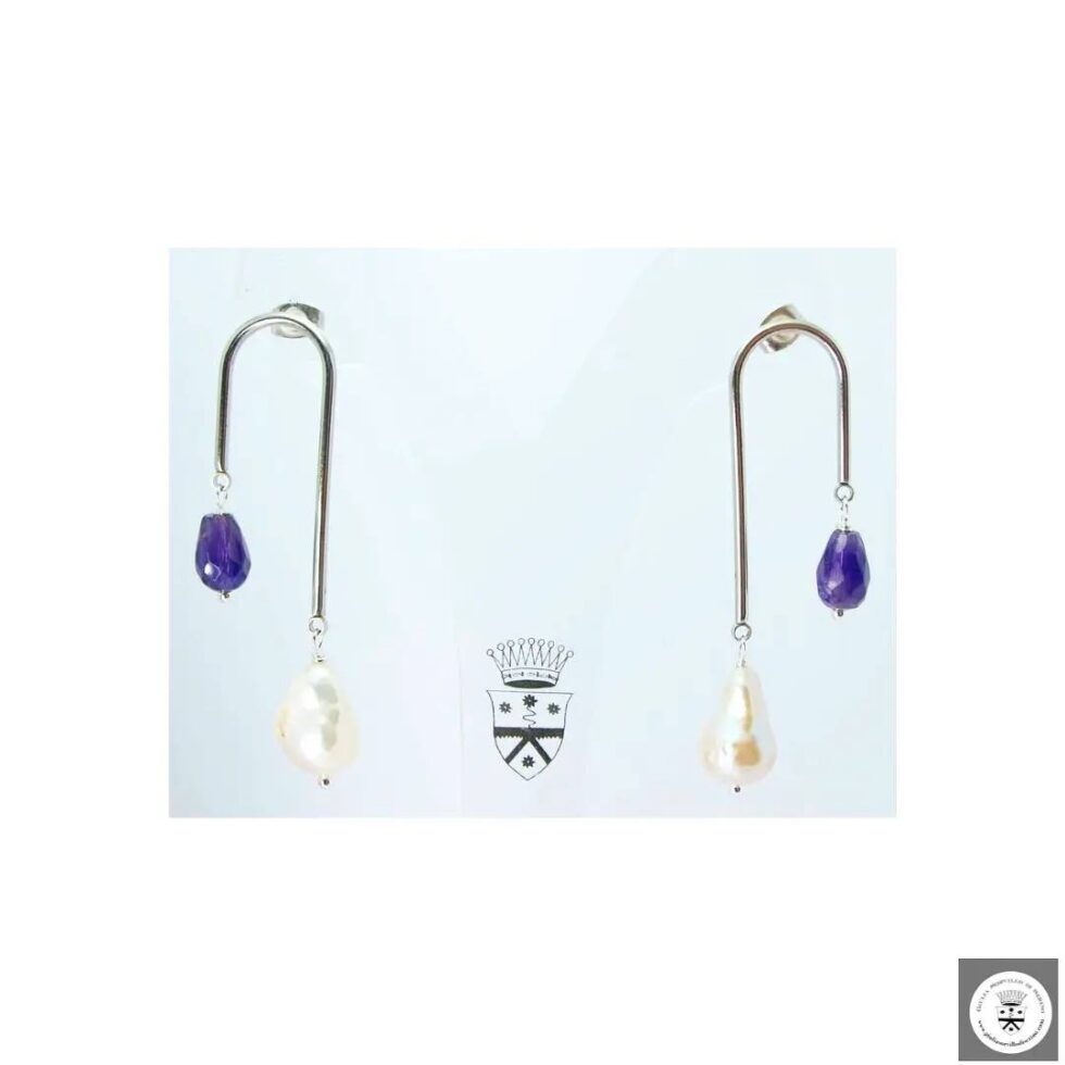 Orecchini up & down con perle di fiume e gocce di ametista. Nickel free