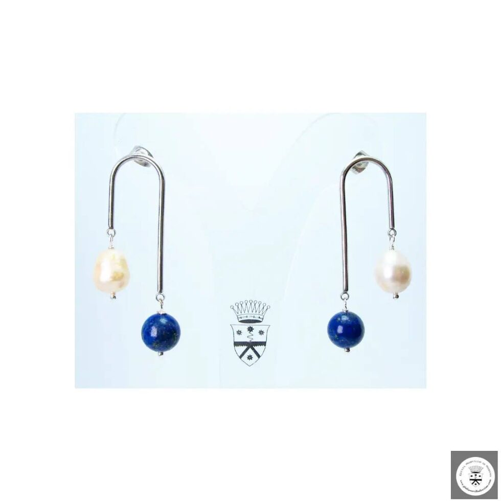 Orecchini up & down con perle di fiume e lapislazzuli. Nickel free.