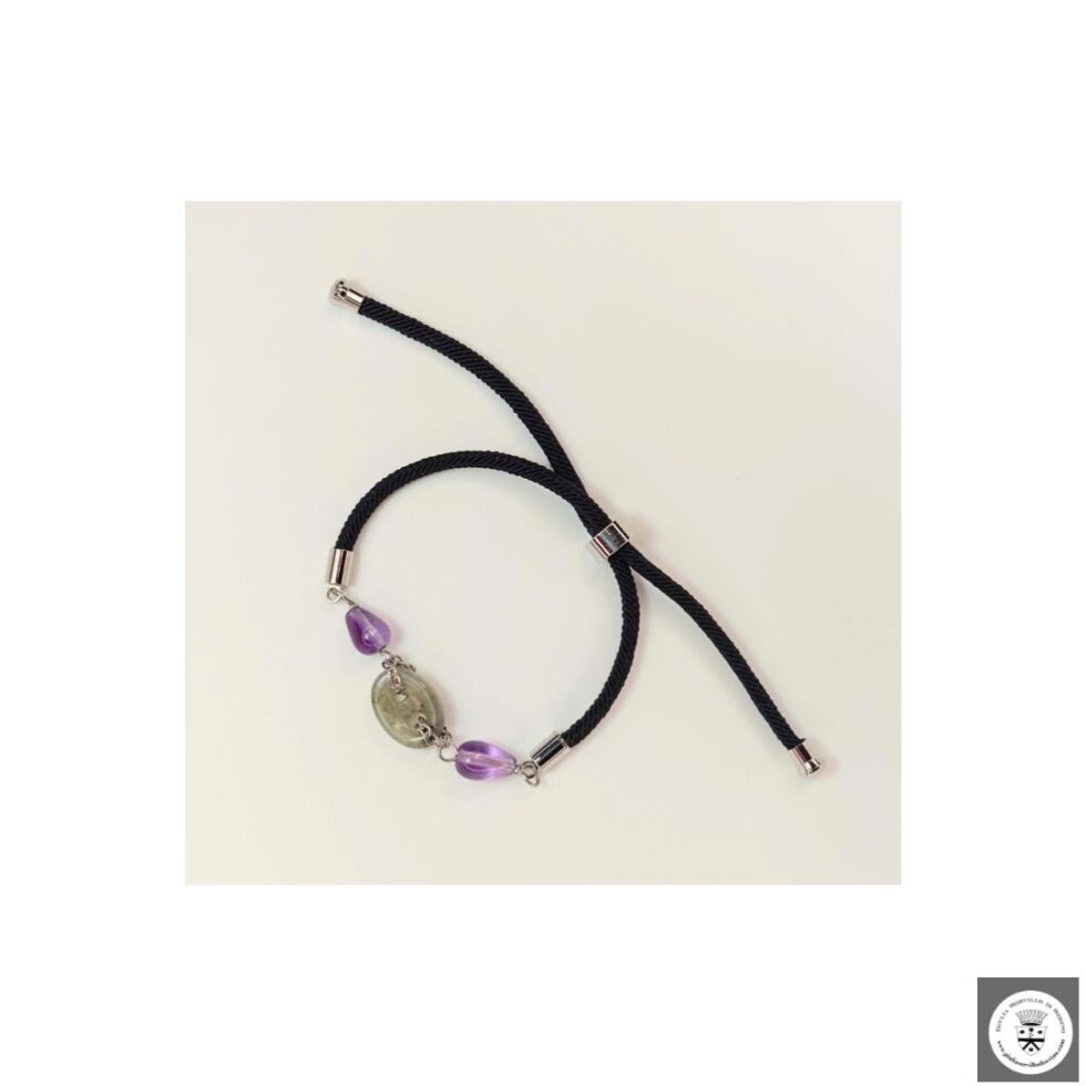 Bracciale con maglia marinara in pietra e ametista. La chiusura del bracciale è nickel free e facilmente regolabile.