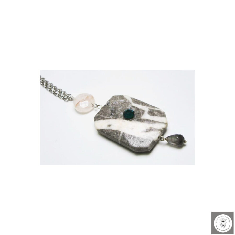Long necklace with gray jasper, rose and gray quartz and Swarovski crystal Catena in acciaio e chiusura nickel free con quarzo rosa.