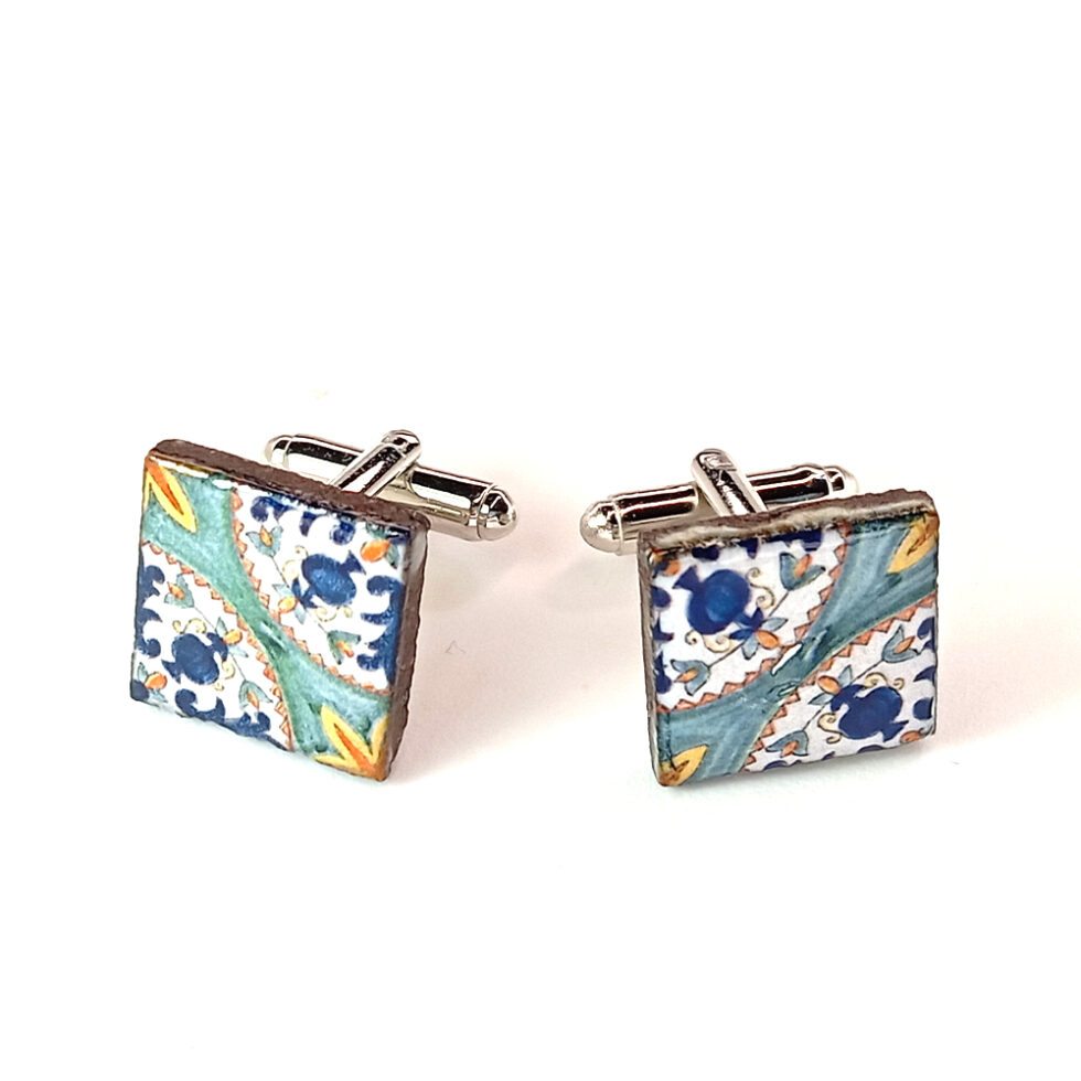 Gemelli con lapilli di lava smaltati (design melograno). Supporto a scatto nickel free.