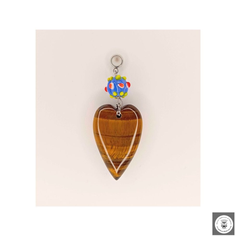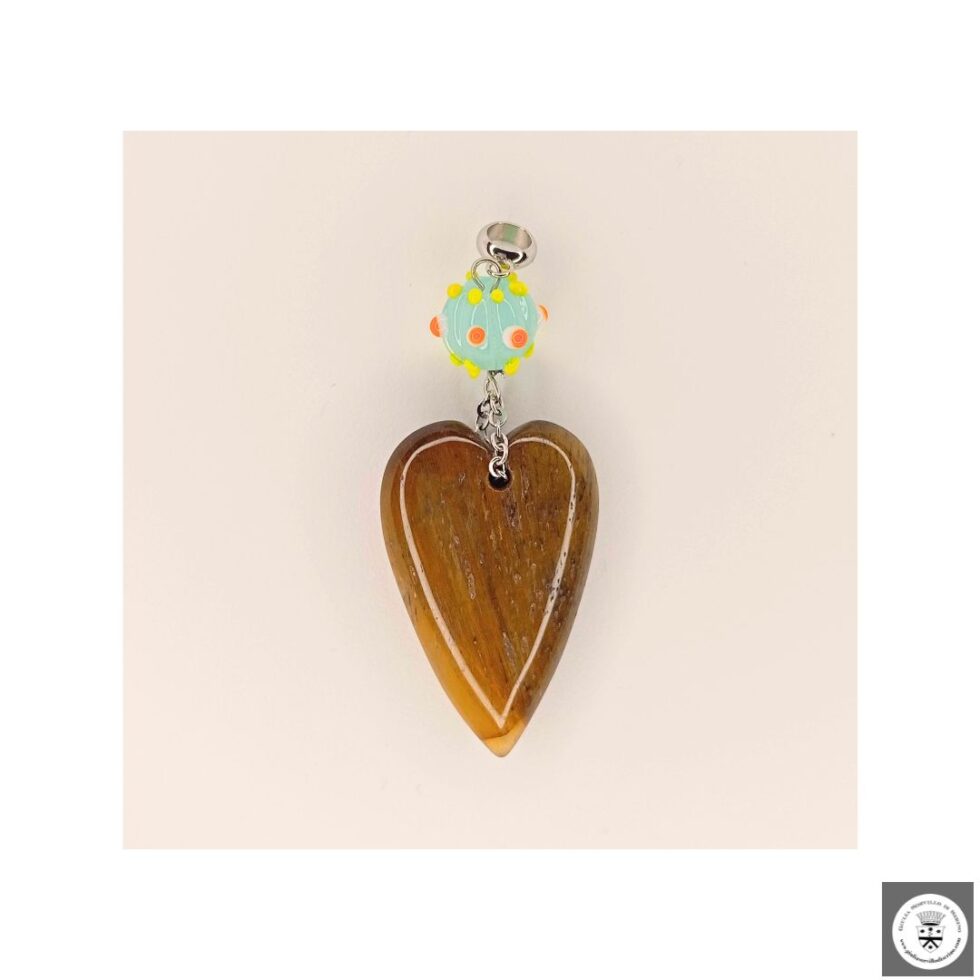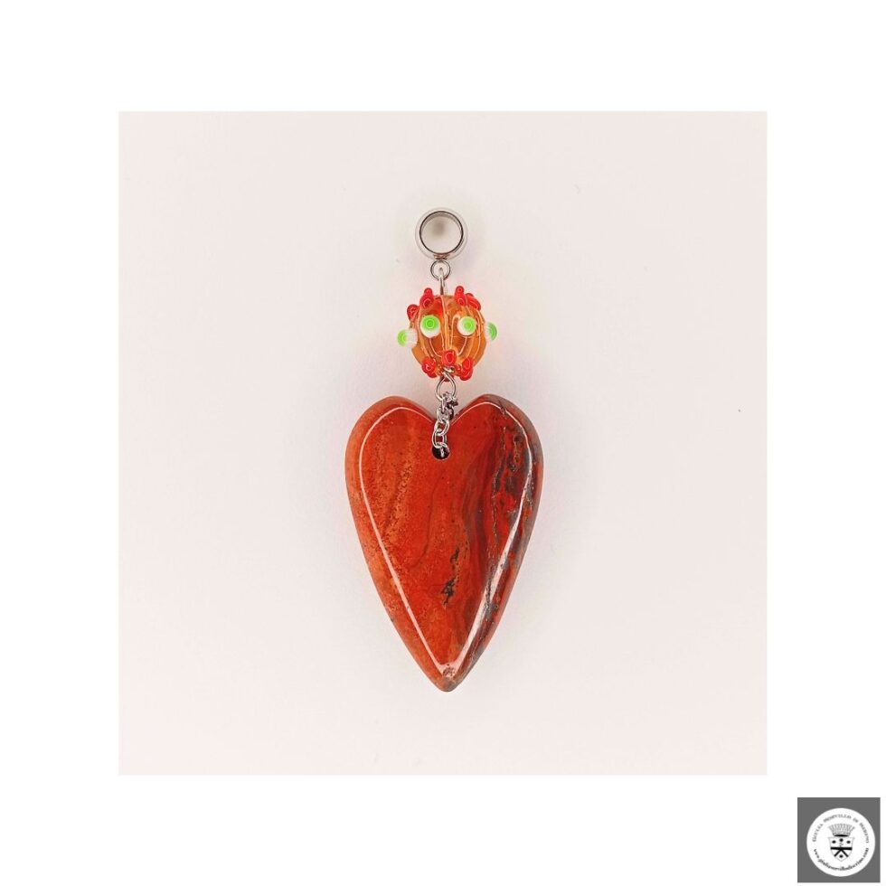 Ciondolo con cuore in pietra dura e murrina veneziana. Nickel free