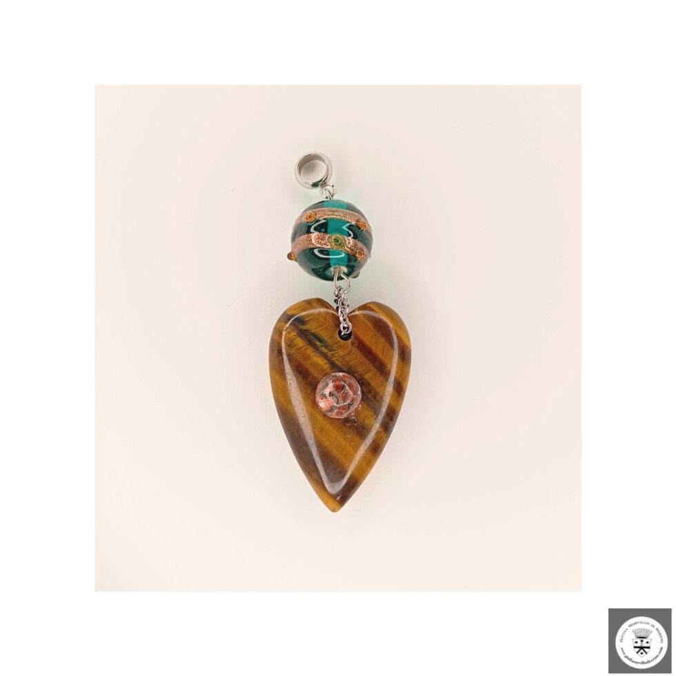 Ciondolo con cuore in pietra dura e murrina veneziana
