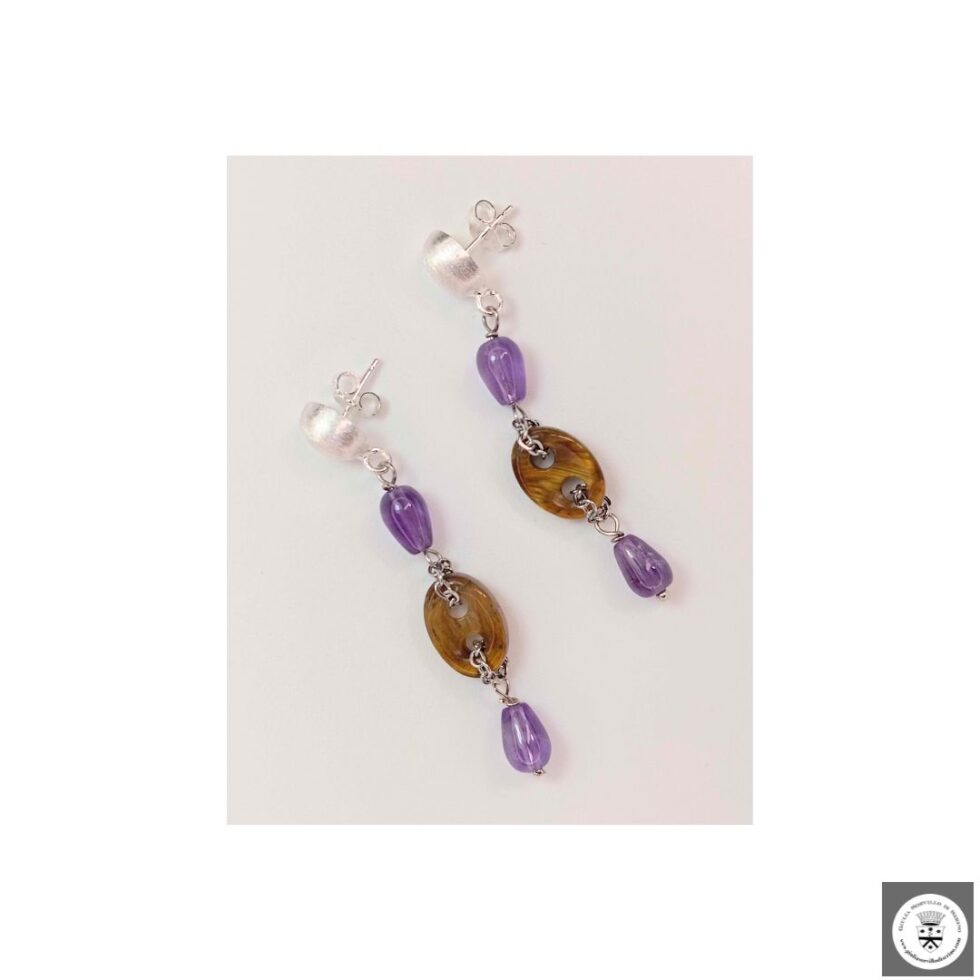 Orecchini con maglia marinara in pietra e ametista. Supporto in argento nickel free