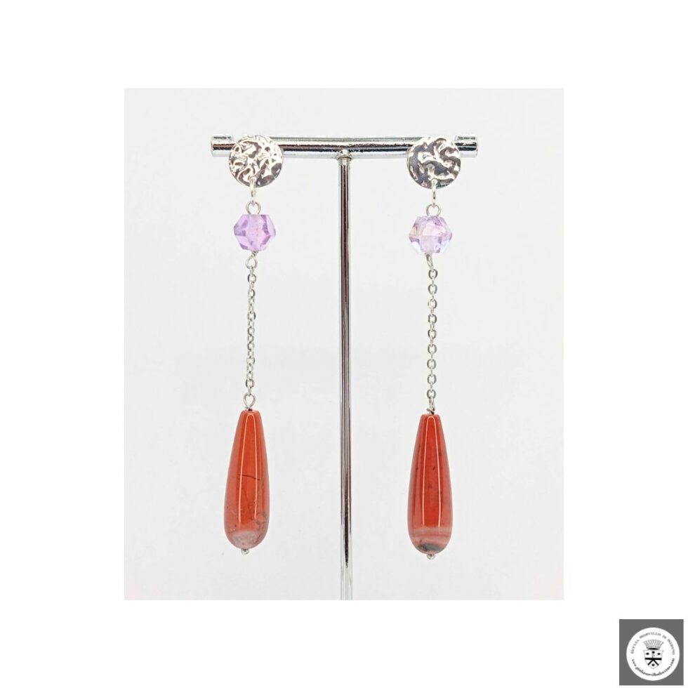 Orecchini lunghi con diaspro rosso e ametista. Nickel free.